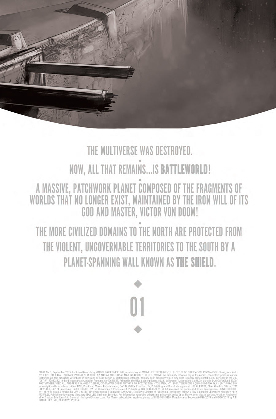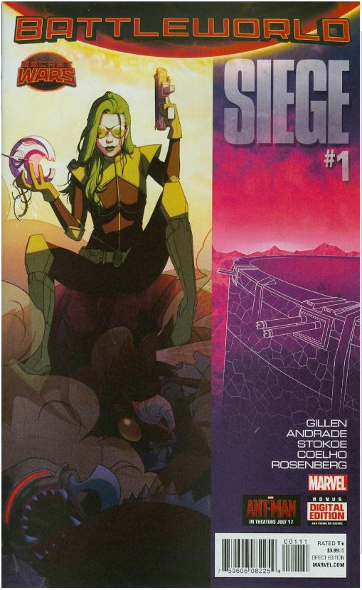 Now. Abigail Brand’s War Journal. Day 3682. Which is 10 years and a month later. I like Gillen’s world building here. The Shield is 250 feet high and circles the entire southern hemisphere of Battleworld.