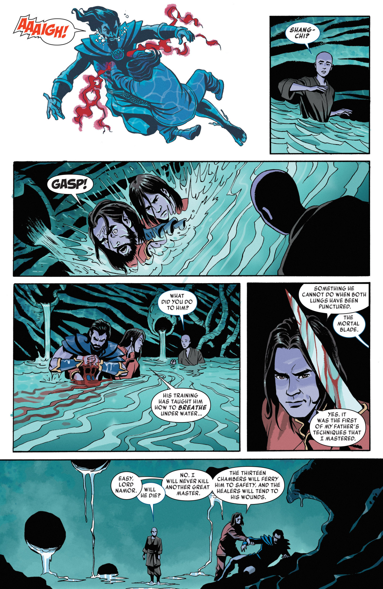 • If anyone speaks out against Emperor Zu, the price is their head! Good thing Shang-Chi’s a man of discretion and…oh, who are we kidding. This is going to get nasty.