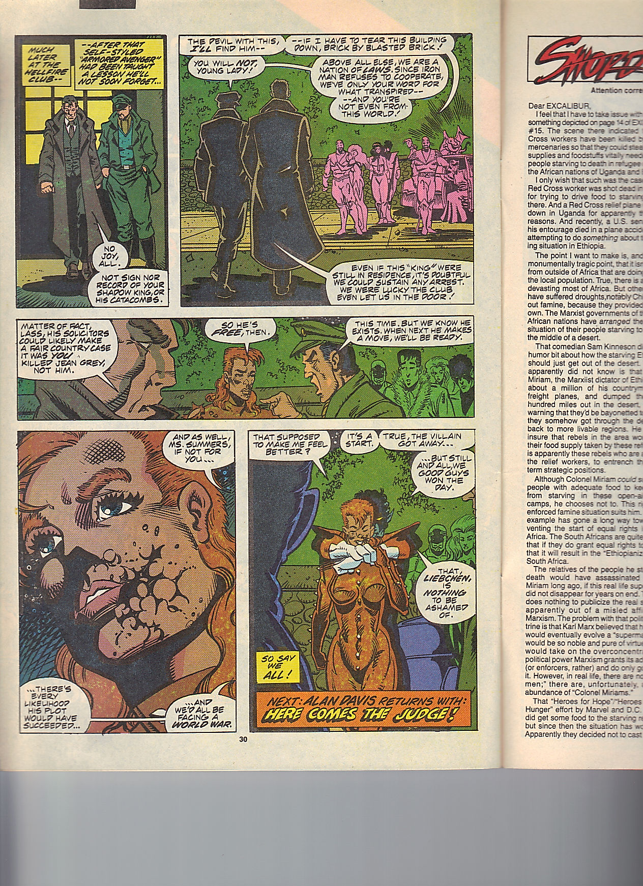 Also, get a look at how comfortable Excalibur is with each other. Only Kurt had time to put on a robe. They all feel like they woke up from a dream. I’m glad that the subplot of Meggan being jealous of Rachel was dropped after this. As I don’t recall it at all. I guess without Kitty thinking about how much better Rachel looks than her, we need someone to remind us of how hot Rachel is. Which is something I’ve never noticed.