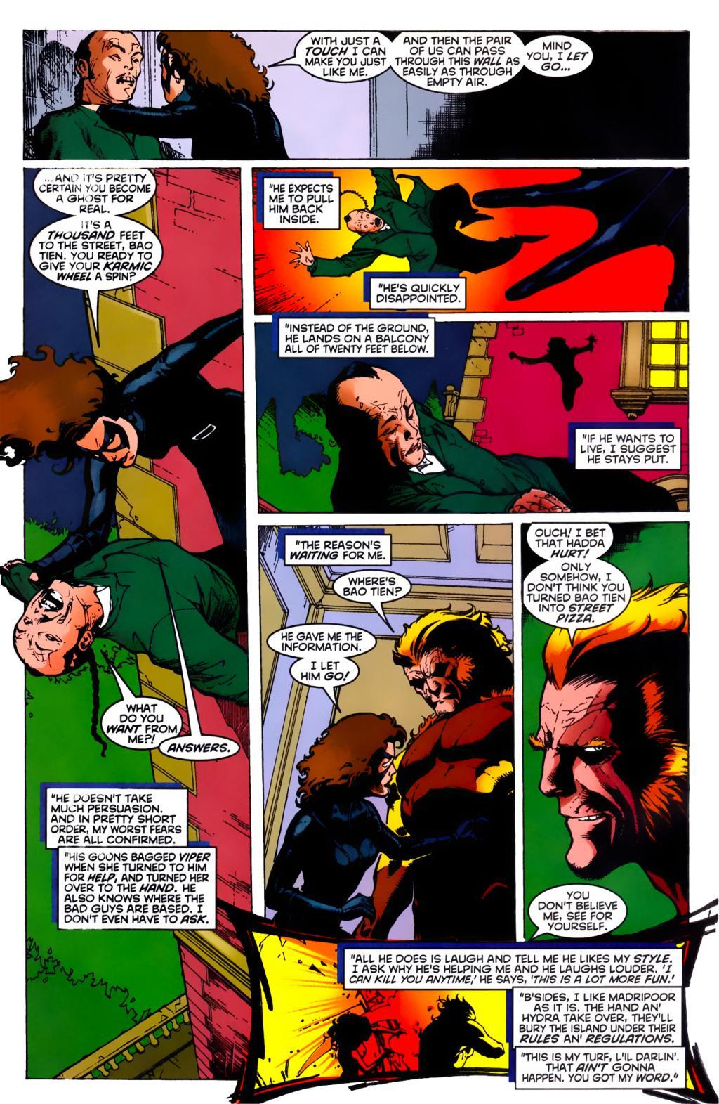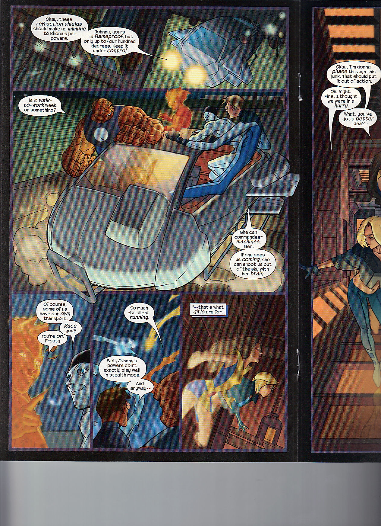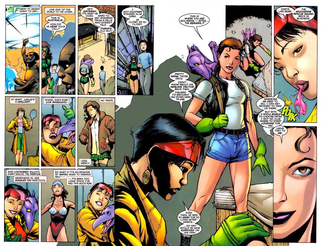 Scotland. Neal Sharra is waiting to leave the dock to go to Moira MacTaggert’s Muri Isle. Jean Grey shows up on a speed boat, along with a very sea sick Cable. Neal wastes no time hitting on Jean. He doesn’t know this, but Jean has recently lost Scott – who was combined with Apocalypse at the end of The Twelve storyline. I’m surprise to see Cable being so sick, I’m sure that isn’t continued from here.